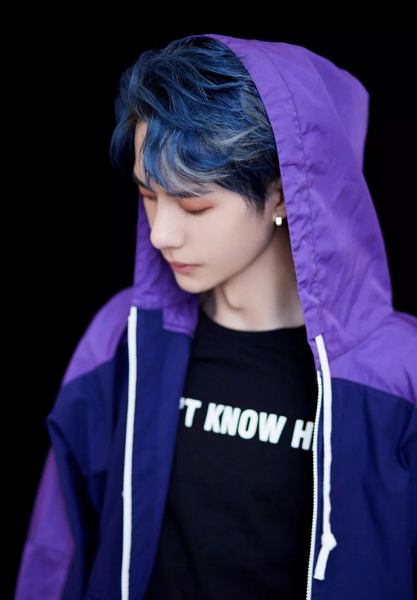 王一博 蓝灰色挑染好适合他,邪魅又妖艳,好像漫画里走出来的绝世帅哥哥。